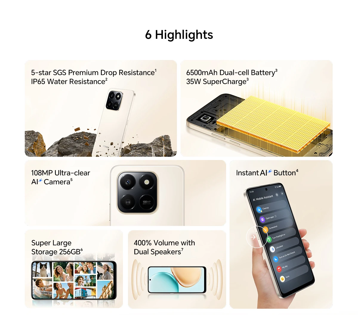 Original Global Version HONOR X7d 4G 8GB+256GB 6.77'' TFTLCD Screen 108M Main Camera 6500mAh 35W SuperCharge MagicOS 9.0