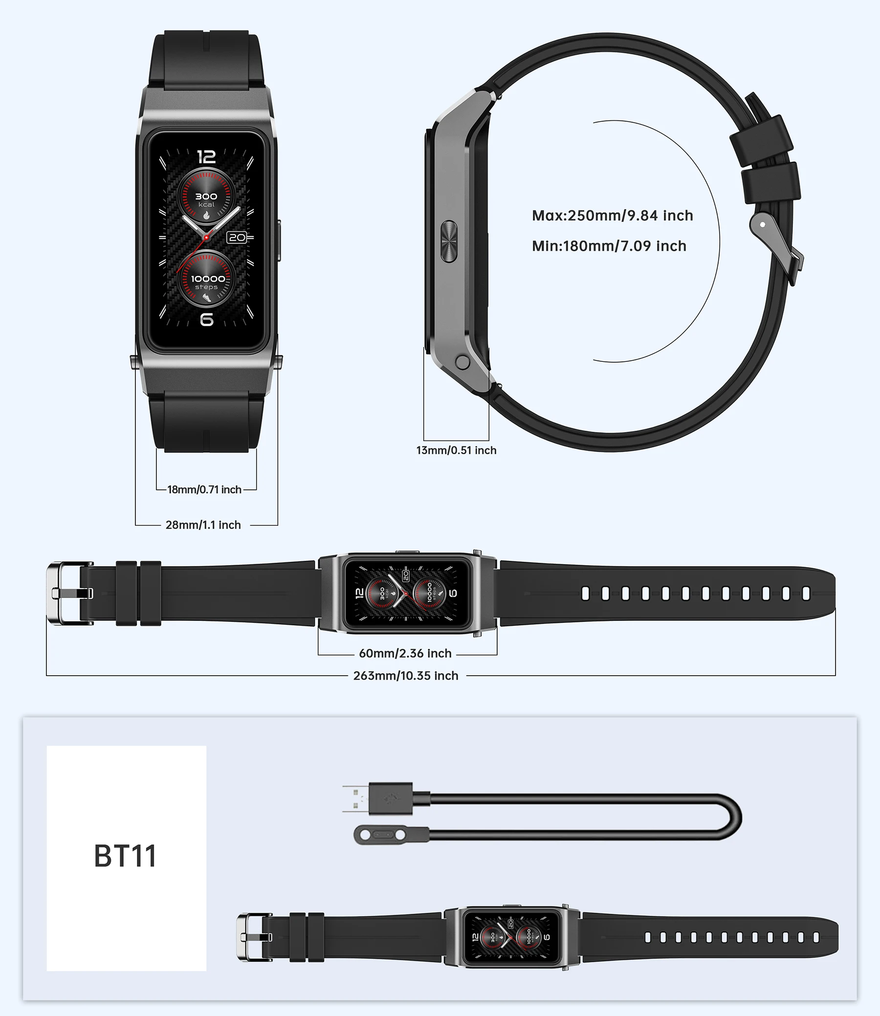 Function: Passometer,sleep tracker,Message Reminder,Call Reminder,Heart Rate Tracker