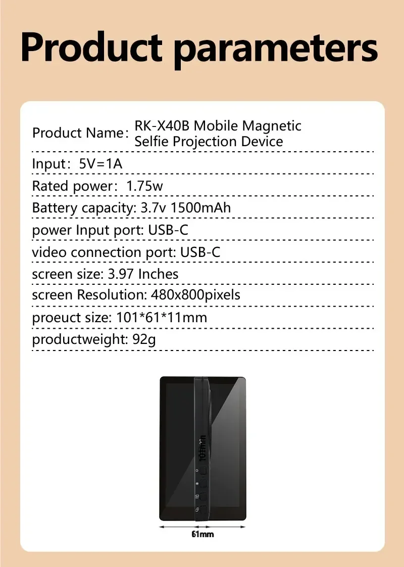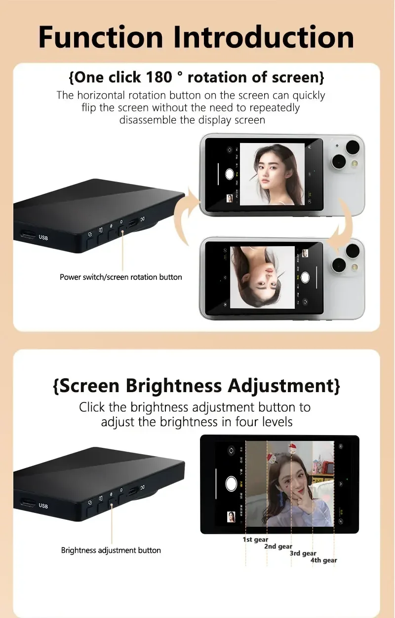 Smartphone Wireless Magnetic Monitor Screen For Smartphone Vlog Live Stream Video Recording Screen Phone Rear Camera Selfie