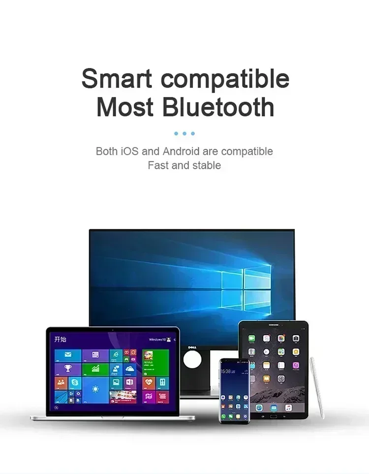 4.Intelligent compatibility: support all Bluetooth mobile phone, tablet, notebook, QQ music, movies, etc., universal all mobile phone.